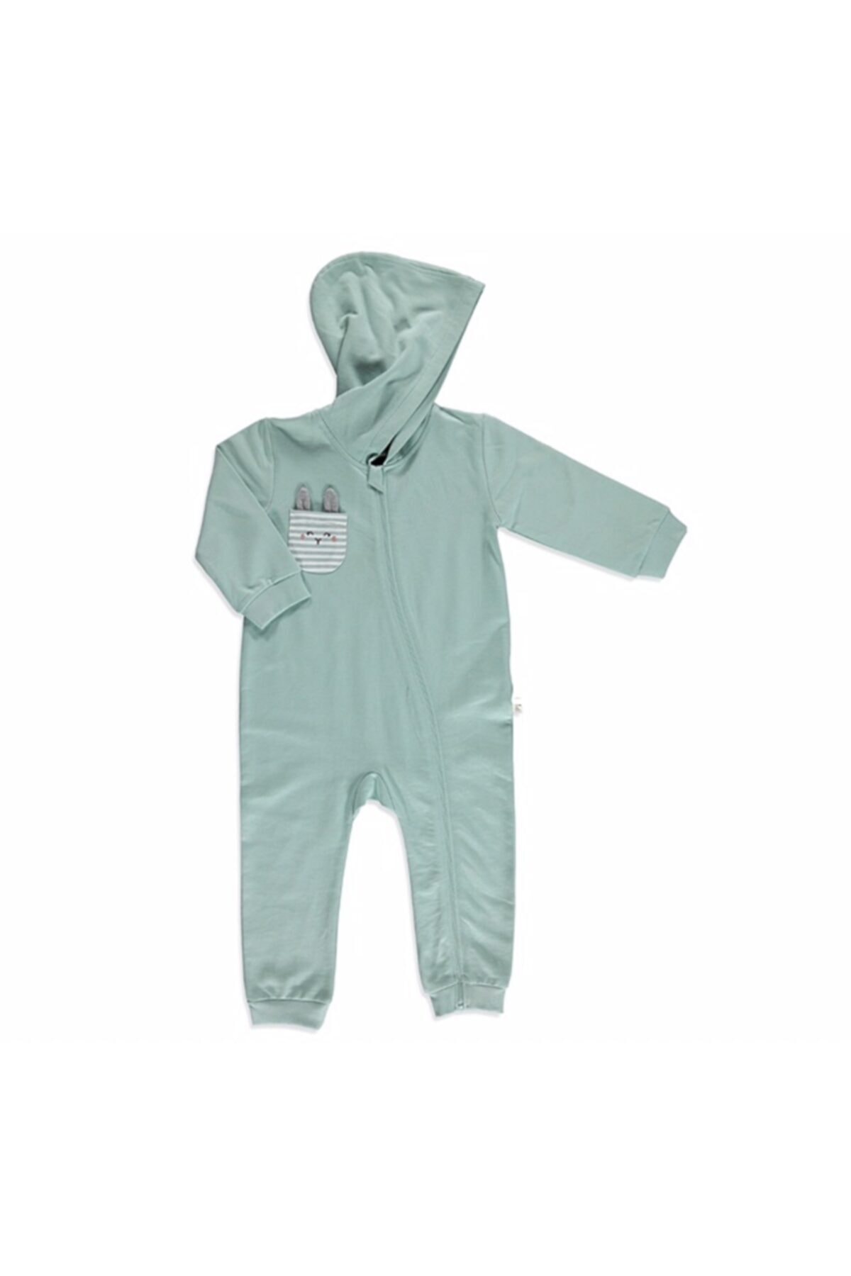 Unisex Bebek Mint Yeşili Tavşanlı Kapüşonlu Tulum
