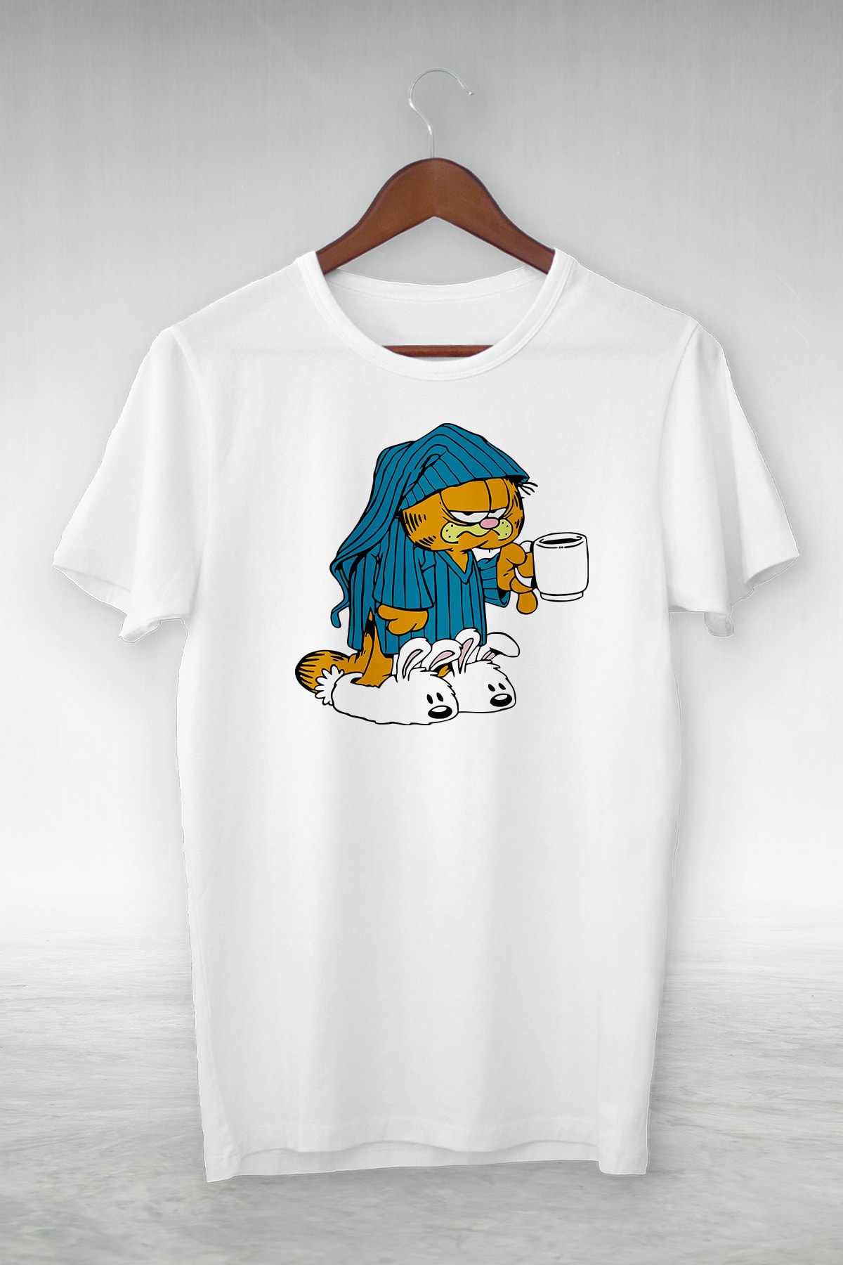 Unisex Beyaz Uyku Tulumlu Garfıeld Illustrasyon Çizim Tsh