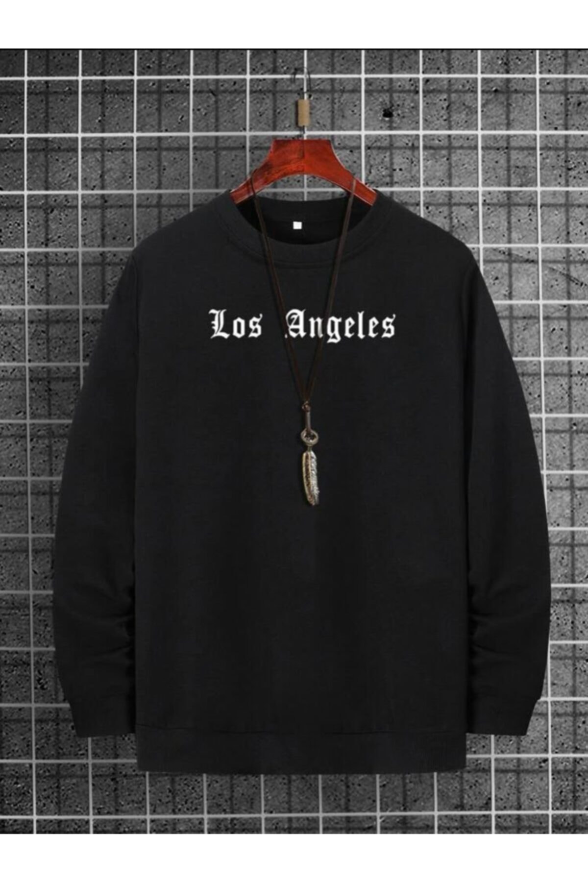 Unisex Siyah Los Angeles Baskılı Oversize Sweatshirt تعداد