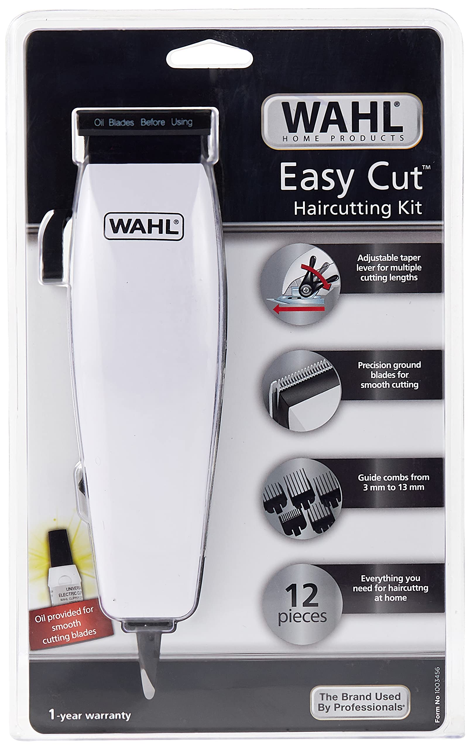 WAHL 09314-3327 Easy Cut hair cutting kit, Cutting length 0.5mm Self-sharpening, high-carbon steel blades, Adjustable Taper Level for multiple cutting lengths, 12 piece kit.