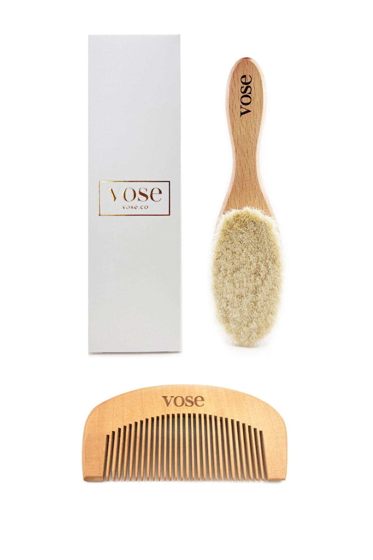 Yumuşak Keçi Kılı Bebek Saç Fırçası & Ahşap Tarak